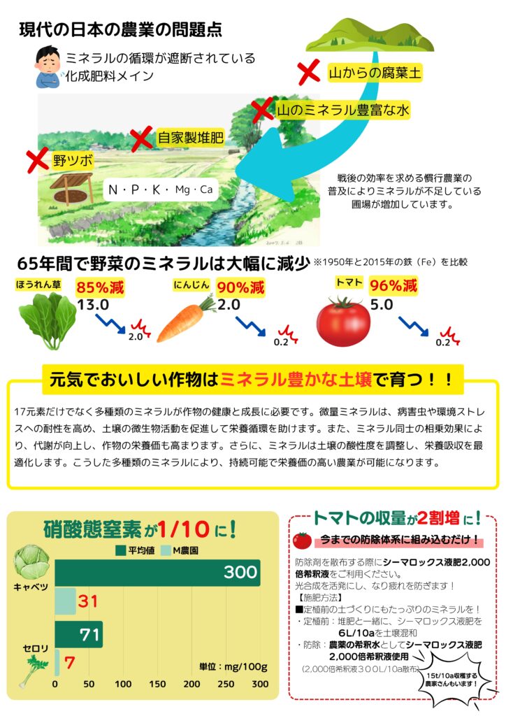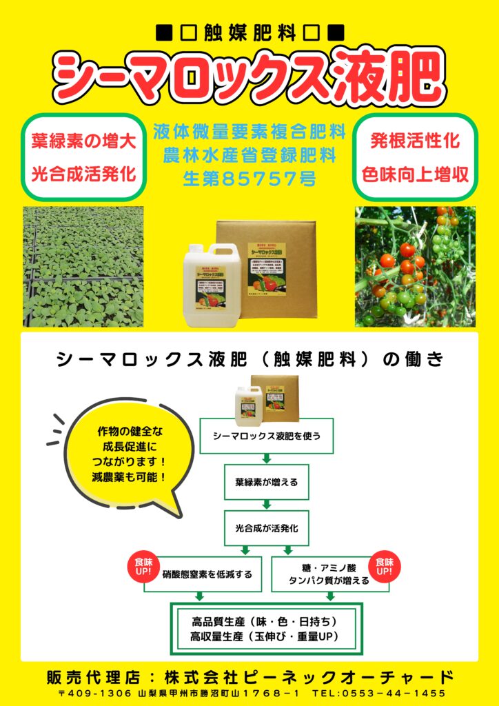特にシーマロックスはMEGUMI-P1との相性も良く、相乗効果でより良い作物が作れることを当社甘利も数年に渡る試験で確認しました。
